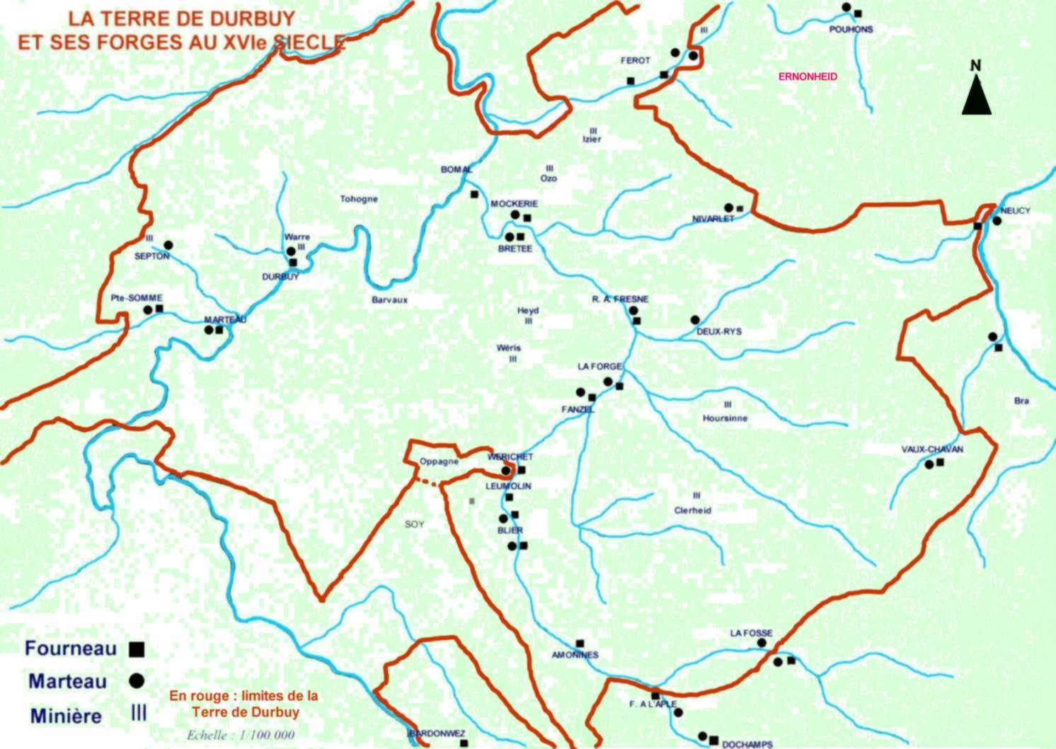 Implantation des fourneaux, marteaux et minières en Terre de Durbuy au XVIe siècle