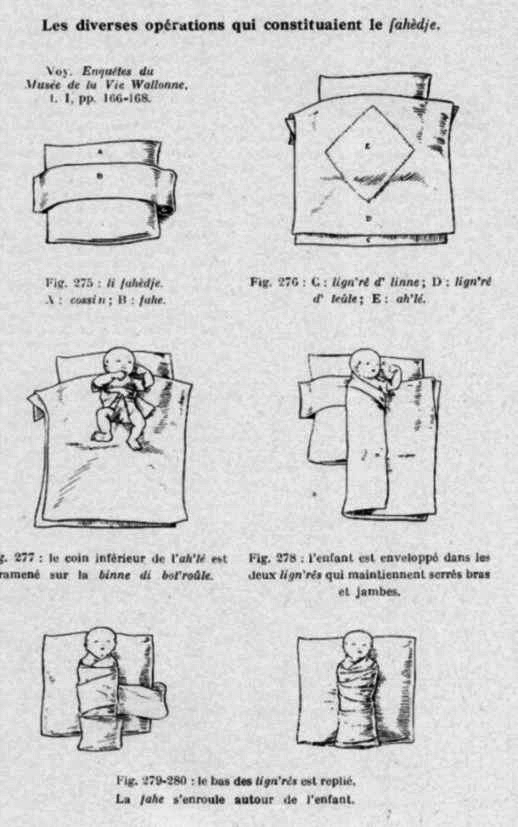 | Les diverses opérations qui constituaient le "maillottage" - "fahèdge" en wallon liégeois