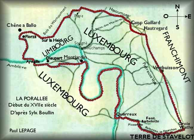 Les limites allaient de Dieupart vers Aywaille (dont seule la partie Est était poraliste) et, par le fond de Nierbonchera, jusqu'à Florzé. De là, elles gagnaient la route de Sprimont jusqu'au Chêne-à-Ballo et Playe, longeant le bois de Warnoumont, celui de Hansoumont, se dirigeaient vers Camp Gaillard et, par Vertbuisson, arrivant à la Croix Wathy, descendaient le rui de Forchon, aujourd'hui Chefna, jusqu'à l'Amblève, traversaient la rivière, les bois d'Aywaille, de Montjardin et revenaient à Dieupart